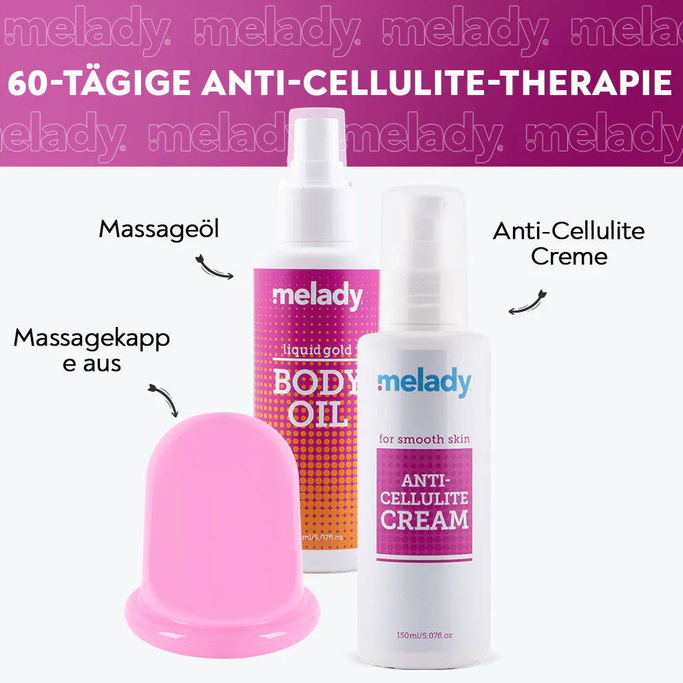 Die Lösung: Basierend auf globalen Trends und nach zahlreichen Studien haben wir unsere 60-tägige Anti-Cellulite Haut-Transformations-Therapie entwickelt. Sie bekämpft Cellulite durch eine vollständige und effektive Methode zur Heimanwendung. Die Therapie kombiniert Massageöl, intensive Anti-Cellulite-Creme mit heißem Pfeffer-Extrakt und hypoallergener Silikonbecher.